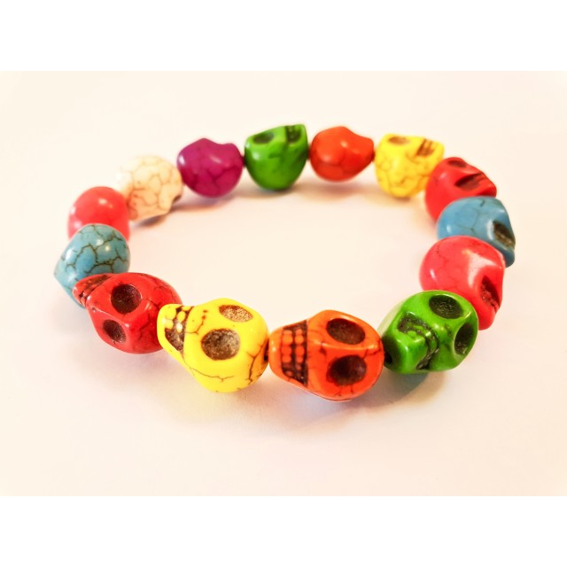 Howlite Skull Bracelet - Multi colour dyed - 10mm
