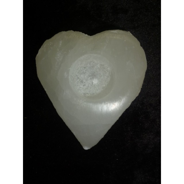 White Selenite - Candle Holder HEART 110mm wide 50mm thick